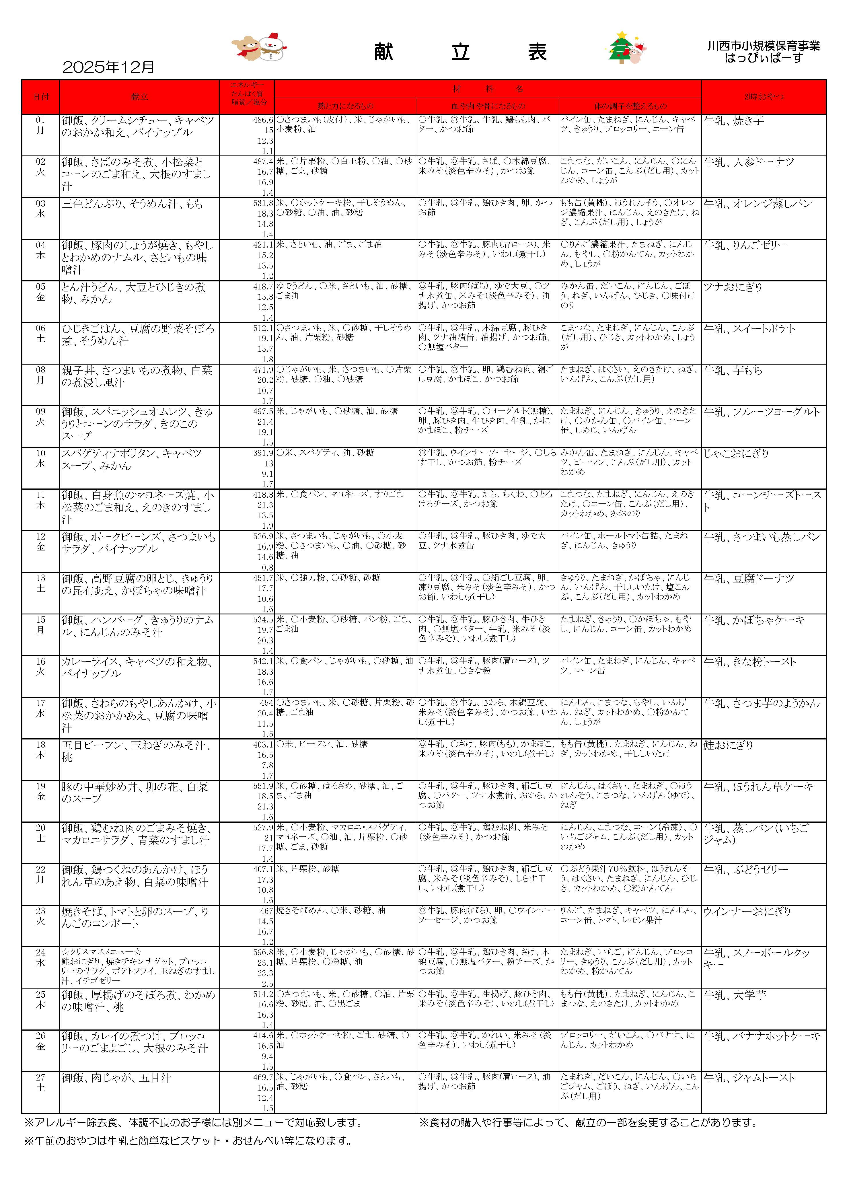 12月の献立情報をお届けします!